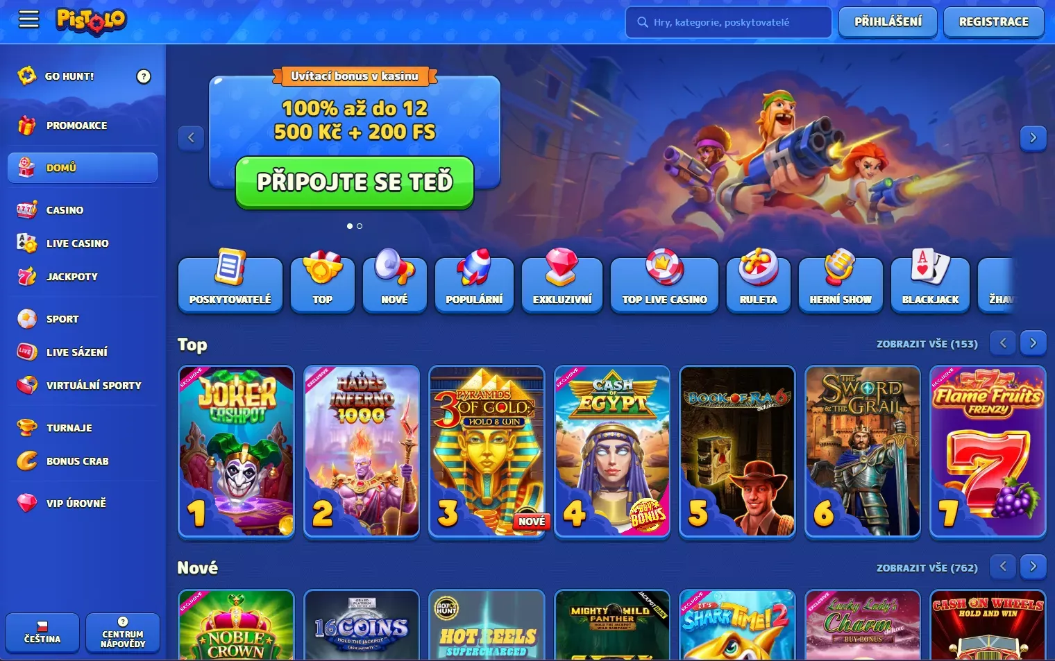 - Kromě sázek můžete využít i Pistolo casino přímo v rámci stejné aplikace.